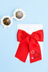 We have hand-embroidered this long-tail bow with red, white and blue stars. This grosgrain bow comes in three sizes. The small bow uses grosgrain ribbon that is 7/8 wide. The medium bow uses ribbon that is 1.5 inches wide and the large ribbon is 2.5 inches wide.